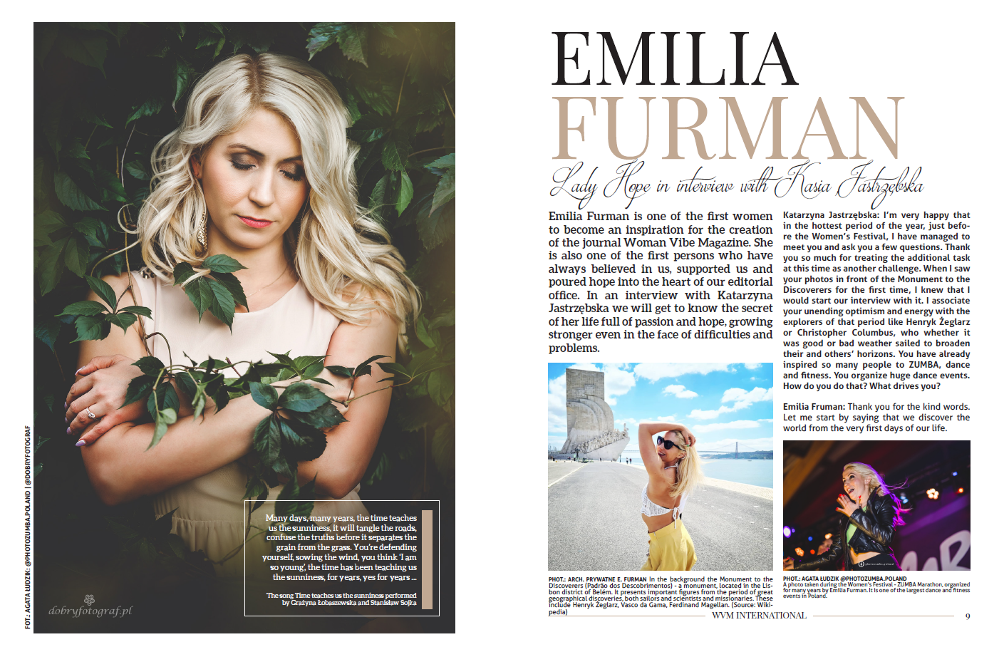 Katarzyna Jastrzębska: I’m very happy that in the hottest period of the year, just before the Women’s Festival, I have managed to meet you and ask you a few questions. Thank you so much for treating the additional taskat this time as another challenge. When I saw your photos in front of the Monument to the Discoverers for the first time, I knew that I would start our interview with it. I associate your unending optimism and energy with the explorers of that period like Henryk Żeglarz or Christopher Columbus, who whether it was good or bad weather sailed to broaden their and others’ horizons. You have already inspired so many people to ZUMBA, dance and fitness. You organize huge dance events. How do you do that? What drives you?